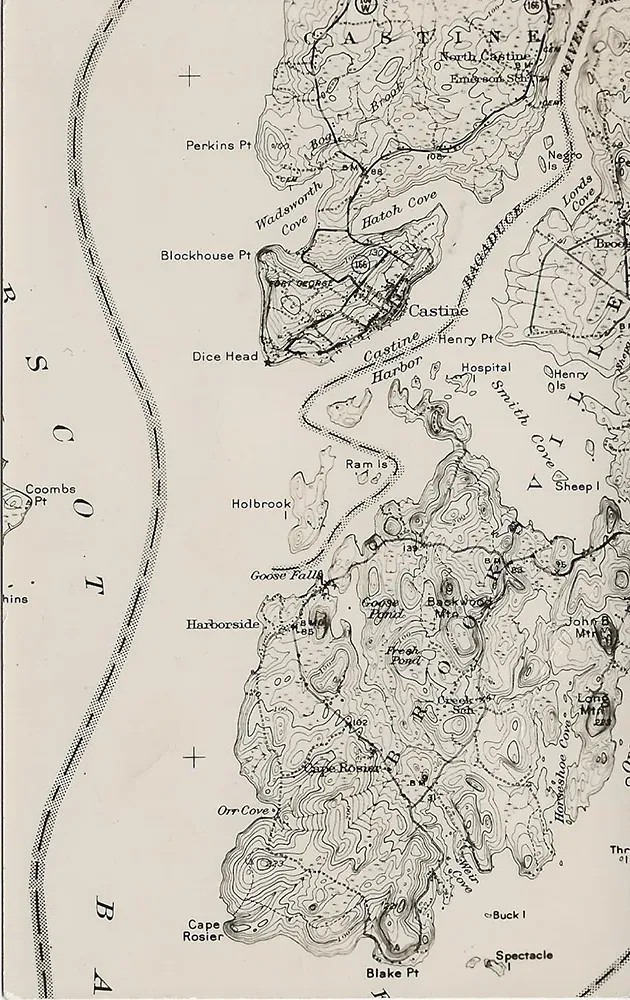A map shows much of Castine and the Cape Rosier section of Brooksville, Maine.