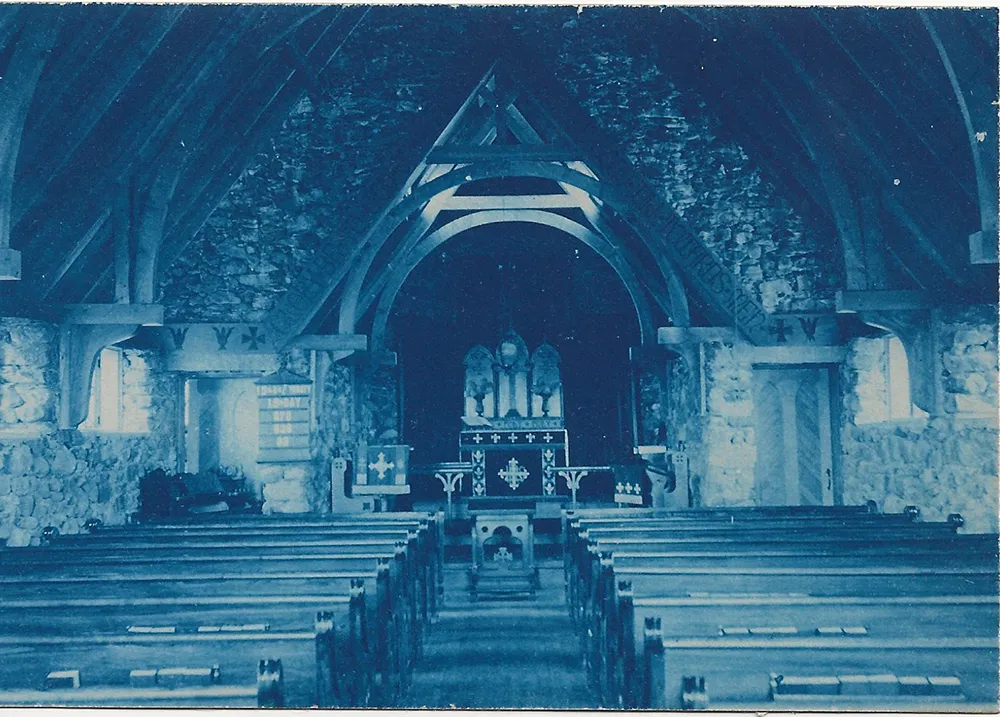 Episcopal Church, interior, Castine, Maine. Blue tint postcard.