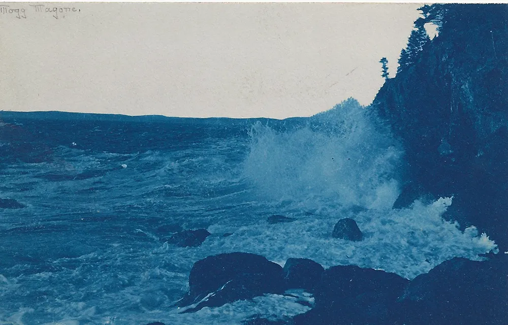 Mogg Magone, Castine, Maine. Reference from a poem by John Greeenleaf Whittier. Blue tint postcard.