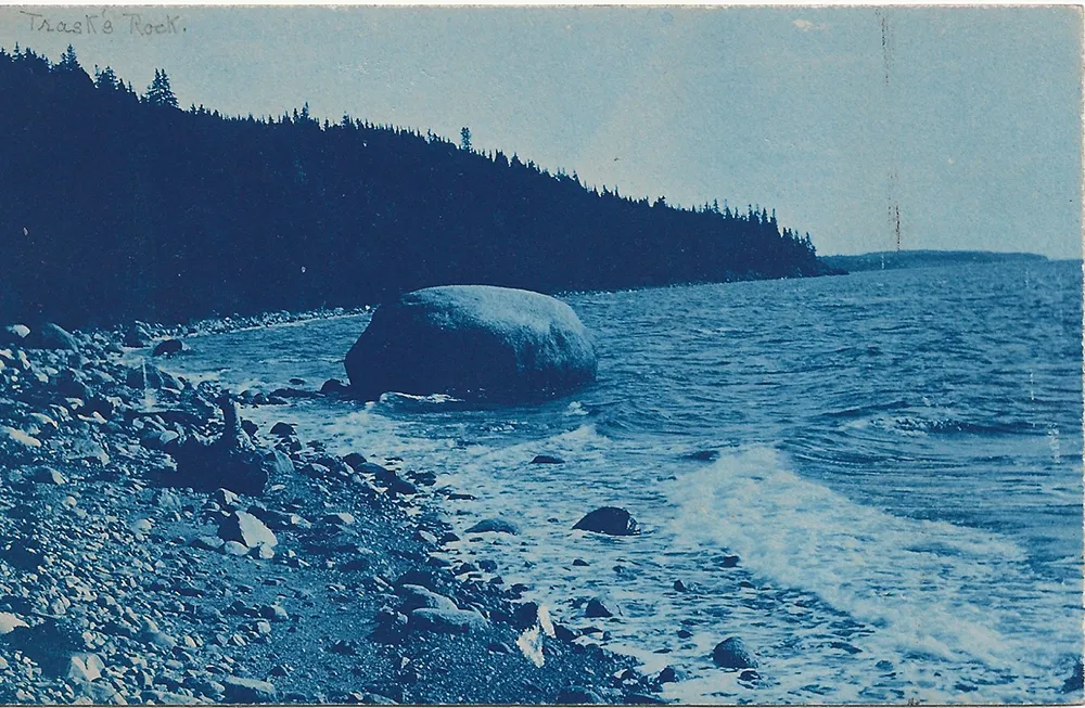 Trask’s Rock, Castine, Maine. Blue tint postcard.